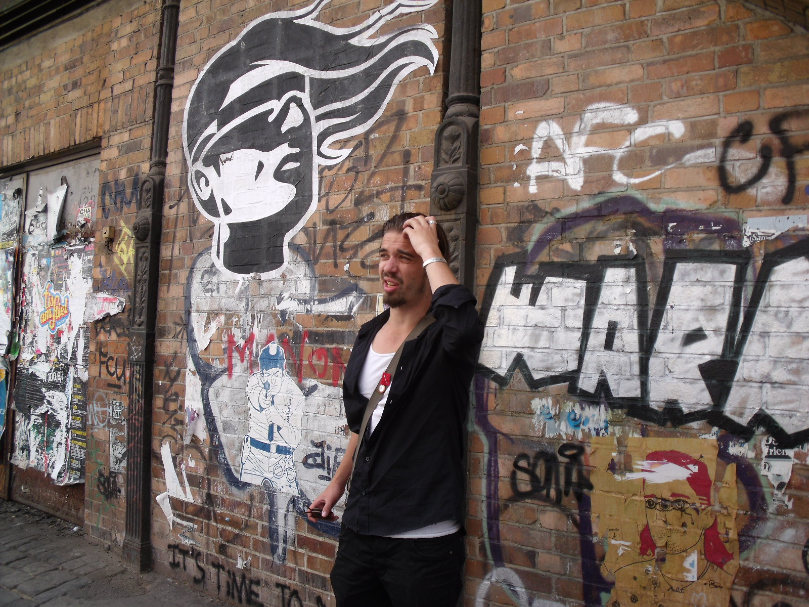 Le périple se poursuit sur un pont des bords de la Spree, où s'érigeait le mur entre Est et Ouest. A la chute de celui-ci, ce no man's land avait été investi par les clubs de la über dynamique scène techno Berlinoise. On devine encore quelques squats mais que peuvent faire clubbers et artistes face à la toute puissance de Media Spree. L'O2 World a ouvert le chemin à Allianz, Mercedes ou des boîtes (pas de nuit) de communication qui investissent le quartier et changent le paysage. "Berlin ist arm aber Sexy" (Berlin is poor but sexy) affirme Klaus Wowereit, maire de la ville. Donc, comment peut-il se passer de cette manne financière du secteur privé, quitte à dénaturer l'esprit de Berlin. D'ailleurs, sur la photo ci dessous, un autre détail est significatif du changement d'état d'esprit. Ce visage blanc que l'on devine sur le mur été réalisé pour le compte de Levis, le commandant à l'artiste portugais Vhils. Par contre, le procédé qu'il utilise pour ses œuvres est assez incroyable. Une surface de plâtre avait été disposée sur le mur, bardé d'explosifs. Quand l'explosion a eu lieu dans des endroits millimétrés , ce visage s'est dévoilé... avec, dessous, l'inscription Go Forth, slogan de la marque. En tout cas, il reste encore plus d'un lieu improbable dans la capitale. Tout près de la East Side Gallery, l'Alternative Tour se termine au YAAM, reconstitution d'une plage jamaïcaine avec tout ce qu'il faut, en plein Berlin Est !!