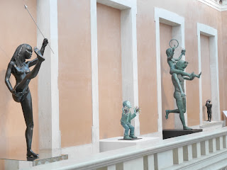 Au rez de chaussée, le visiteur s'attarde sur les sculptures miniatures (ce qui a du contribuer au fait que 250 des 350 œuvres de cette exposition n'étaient pas exposées à Paris l'an dernier) aux noms plus farfelus les unes que les autres. Nous retrouvons certaines d'entre elles au deuxième étage grandeur nature. Dans le hall d'entrée, les lights de America America rayonnent jusqu'au Grand Canal qui coule dans son dos. Martial Raysse avait introduit le néon dans son travail en 1962 et c'est ce patrimoine lumineux qui nous marque et nous le fait comparer à d'autres artistes comme le Turc Sarkis qui l'utilise beaucoup (nous y reviendrons dans l'article à propos des pavillons de la Biennale).